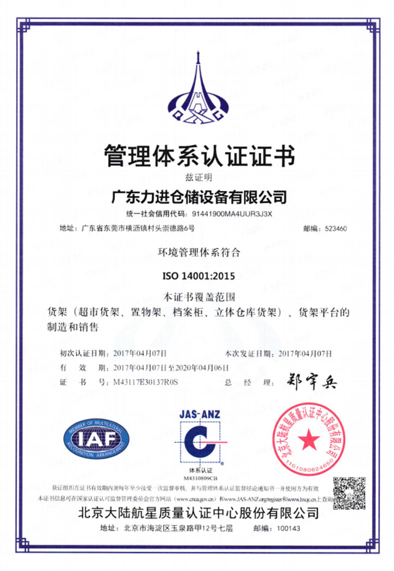 ? 2014年3月   成立香港力進倉儲設備有限公司,致力開拓海外市場。